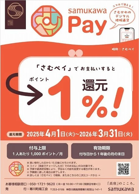 『さむかわPay』30%ポイント還元キャンペーンは、皆さまのご利用により好評のうちに終了いたしました。2025年12月26日より、ポイント付与率は通常の1%に戻ります。