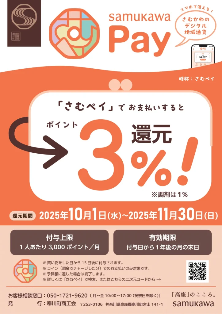 2025年10月1日より、『さむかわPay』をご利用されている全ての方に感謝を込めて還元率アップ!